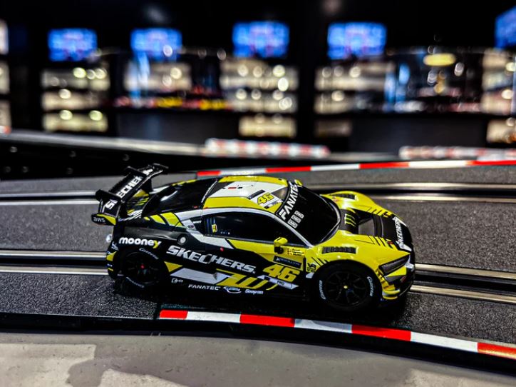 ¡El Doctor llega a las pistas de carreras! Revive la transición legendaria de Valentino Rossi de las dos a las cuatro ruedas con este espectacular Audi R8 LMS GT3 Evo II de la serie Carrera GO. En escala 1:43 y con su icónico número 46, este modelo captura todos los detalles del coche que Rossi pilotó en las competiciones GT. Perfecto para jóvenes pilotos desde 6 años y la emoción de seguir los pasos de una leyenda del motor.