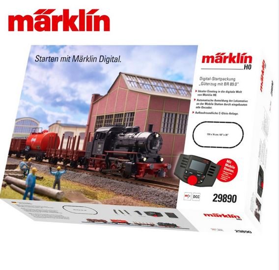 Set de iniciación digital para el 70 aniversario de la locomotora de culto Märklin serie 89.0. Incluye una locomotora cisterna de la clase 89.0 de los Ferrocarriles Federales Alemanes (DB), una góndola, un vagón cisterna "Gasolin" y un vagón de estacas tipo Rlmms 56. Con una longitud total del tren de 45,5 cm, es la forma ideal de adentrarse en el mundo digital Märklin H0.