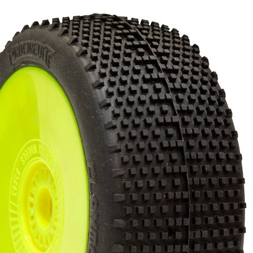 Ruedas 1/8TT de Procircuit en compuesto soft, pegadas con llanta amarilla. (2und) Pre-mounted yellow.