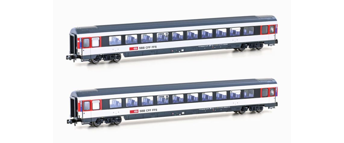 Set de 2 unidades: Incluye dos coches completos de 2ª clase con la decoración moderna de SBB.